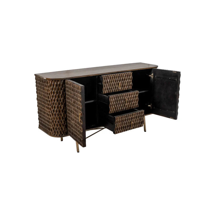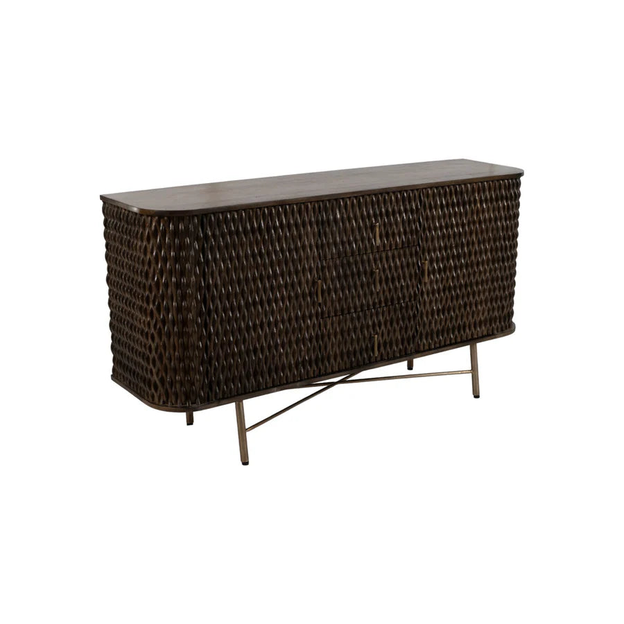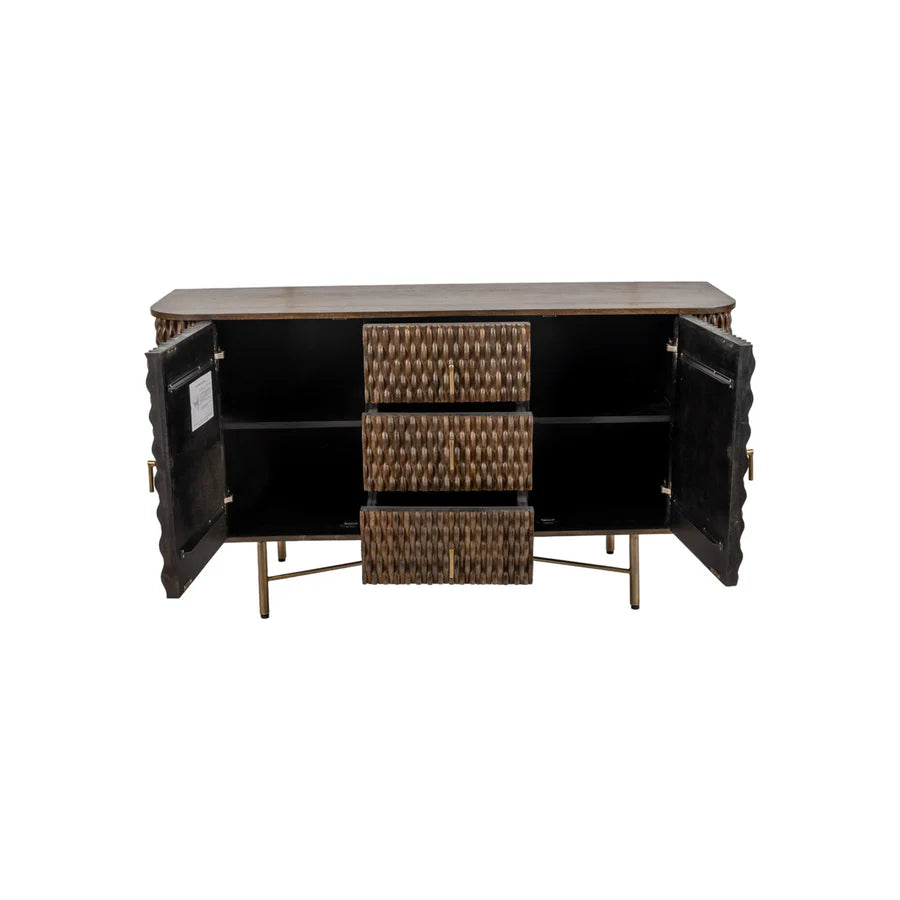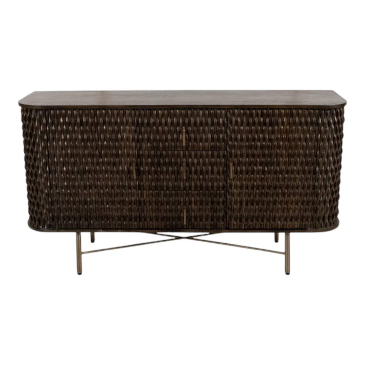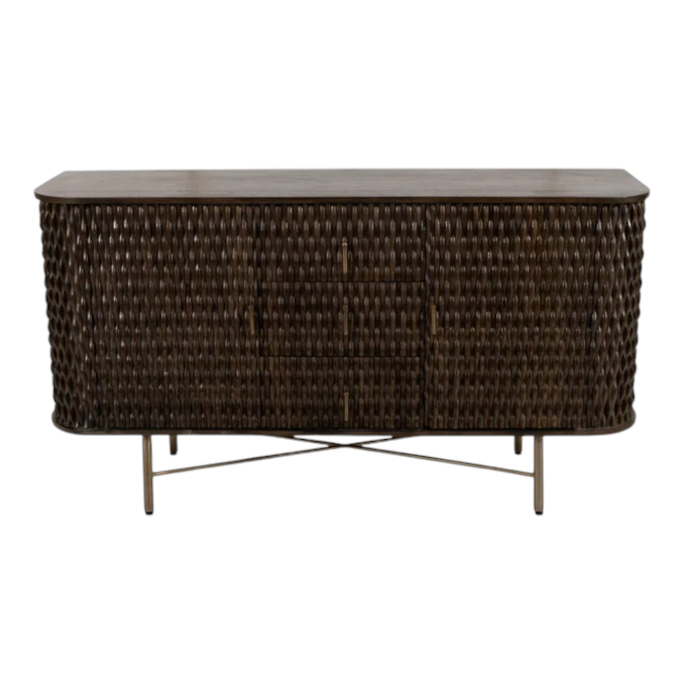 Carved Wood Console, Brown / Gold 60" W x 16" D x 32" H