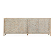 The Sienna Cabinet, crafted from reclaimed pine, features a stunning herringbone pattern that adds visual interest. Its design promotes a serene and calming atmosphere, making it an ideal piece for creating a peaceful ambiance in your home. The natural beauty of the wood and intricate pattern make it both a functional and stylish addition to any room.
