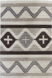 Beautiful Grey, Beige and Brown Southwestern style thick pile 100% wool rug