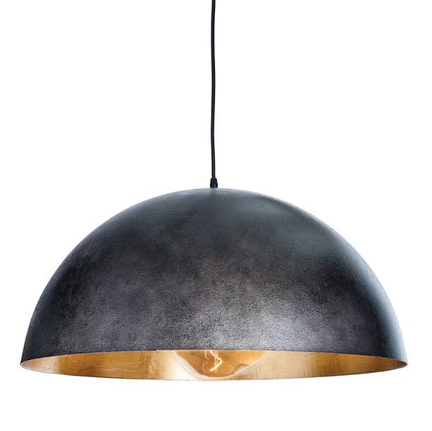 A bold blend of modern simplicity and refined drama, the Sigmund Pendant features a smooth domed metal shade with a rich gold-leaf interior that casts a warm, ambient glow. Available in matte black or crisp white finishes, this large-scale fixture is perfect for making a statement over dining tables, kitchen islands, or entryways.