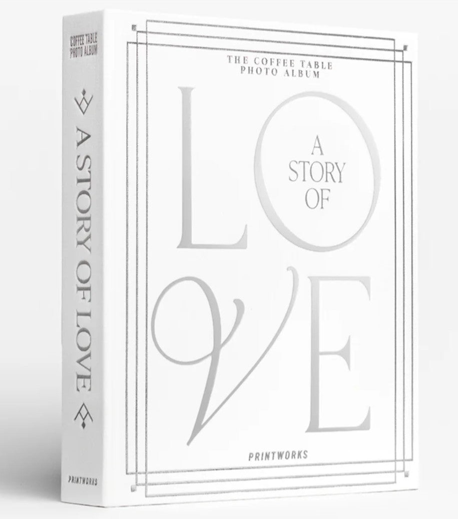 Make your wedding day memories last forever, or bring the perfect gift to the newlyweds with our beautiful photo album A Story of Love, featuring a white cloth cover with silver foiled text.