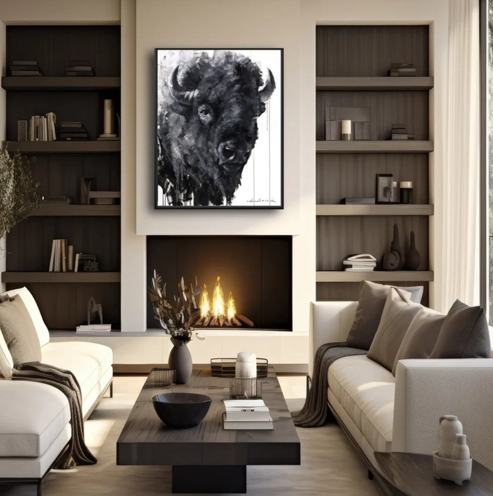 Limited Edition "Granite" Bison Framed Print by David Frederick Riley