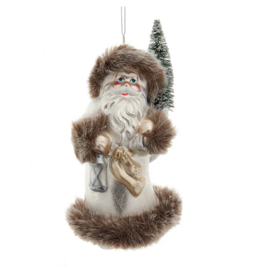 Glass Frost Santa With Brown Fur Trim Ornament