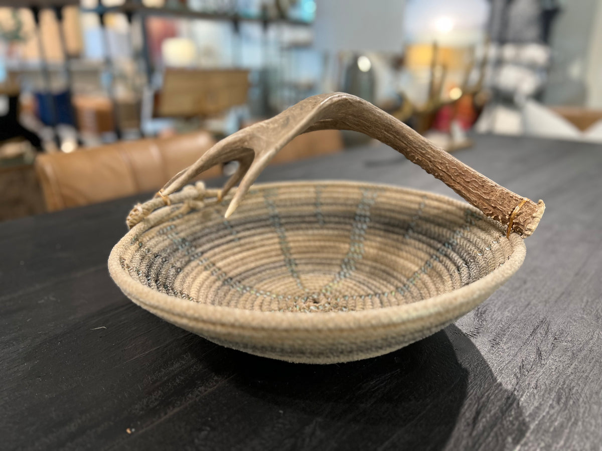 • Genuine antler shed handle and rope basket