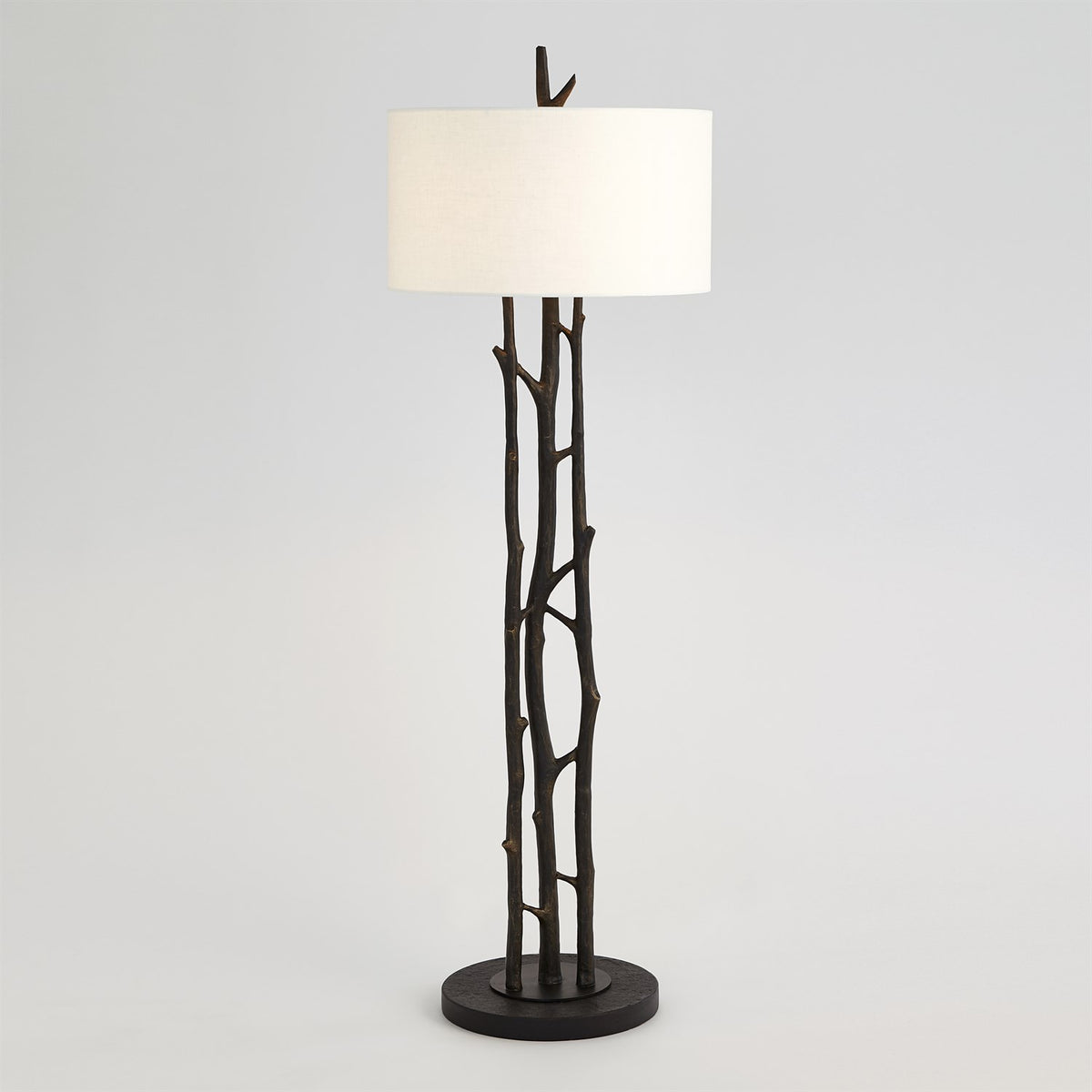 The nature-inspired Grove Floor Lamp is made of iron with a bronze finish and gold highlights on a flamed black marble base. Hardback Fabric Shade.