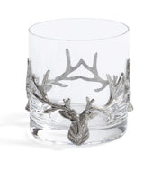 This rustic yet refined three-dimensional stag head and antler motif glass is an incredible accent to your bar carts or tablescape. Ideal for serving whiskey, cocktails, or spirits. Crafted from clear glass with sculpted pewter detailing. This glassware makes a memorable gift for hosts, collectors, or winter cabin enthusiasts. Hand wash only. Holds 280 ml.