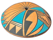 Vintage Traditional Pueblo Seed Pot in Turquoise, Black and Terracotta. Becky Pasquale was an Acoma potter and was born in 1940s. She started making pottery around the 1960s. She is the wife of Harold Pasquale and the mother to Yolanda P. Trujillo and Marcella Augustine. She makes traditional black-on-white, bowls, seeds pots, clay baskets, miniatures, fine lined designs and polychrome pots.