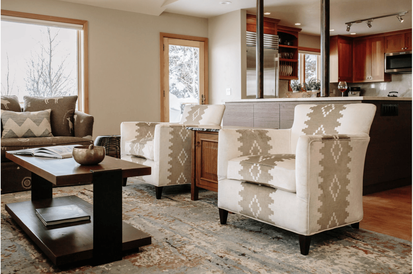 Rooted in tradition but layered with refinement, Rancher brings timeless classic aesthetics into the now by introducing subtle layers of western aesthetic such as fabrics and finishes that speak to the region. Architectural elements—exposed beams, steel fireplaces, and vaulted ceilings—are set in a rustic framework, while the furnishings tell a more tailored story: custom upholstery, hide rugs, and aged metal accents including enveloping the elevator. Every room is designed for living, gathering, and enjoying the rhythms of daily life. The result is an inviting family home that honors legacy with style and scenic mountain views.