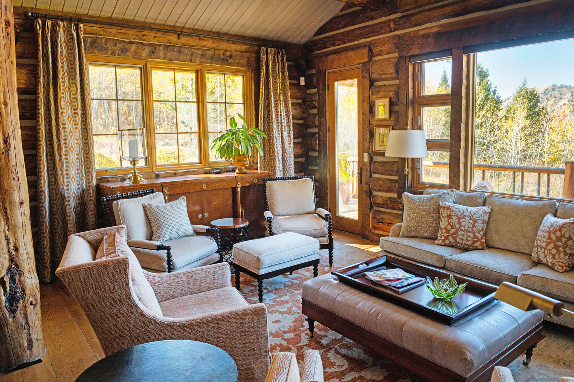 Just steps from the Snow King mountain and the world famous ski slopes, this home was designed for a life in motion, but also for restorative stillness. The interiors are calm and grounded, layered with wool, raw wood, and quiet color. Bedrooms feel serene and cocooned, while public spaces offer openness without echo. The refined elegance of a tongue and groove classic log home with light ceilings creates an updated atmosphere where the overall effect is one of subtle luxury—thoughtful, peaceful, and perfectly aligned with the rhythm of rustic mountain life.