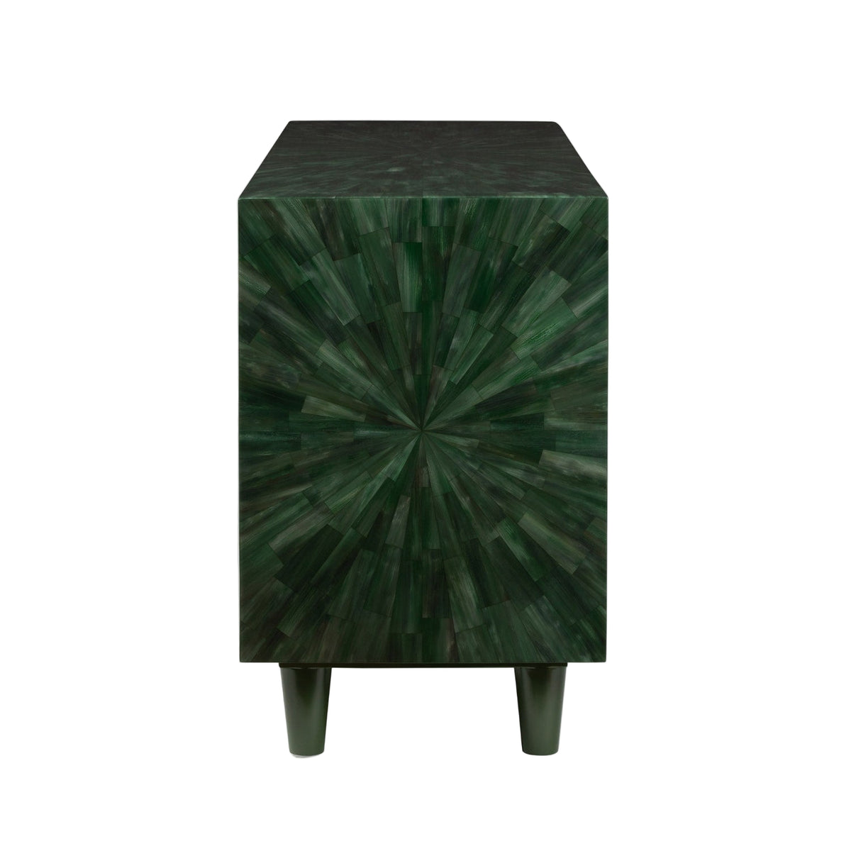 A fabulous faux horn buffet with resin coating with brass knobs in dark hunter green color.
