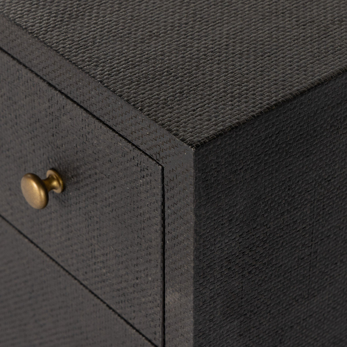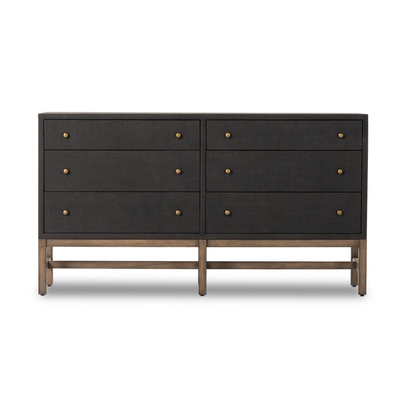 The Fiona 6 Drawer Dresser is a refined blend of functionality and elevated style. This dresser offers a striking contrast against its warm, solid wood base. Six spacious drawers provide ample storage for clothing or linens, each accented with petite brass knobs that add a subtle touch of elegance. The clean lines and minimal hardware make it a versatile piece that works beautifully in both classic and contemporary interiors. Whether paired with other bedroom furnishings or standing on its own, the Fiona dresser brings a polished, grounded presence to your space.