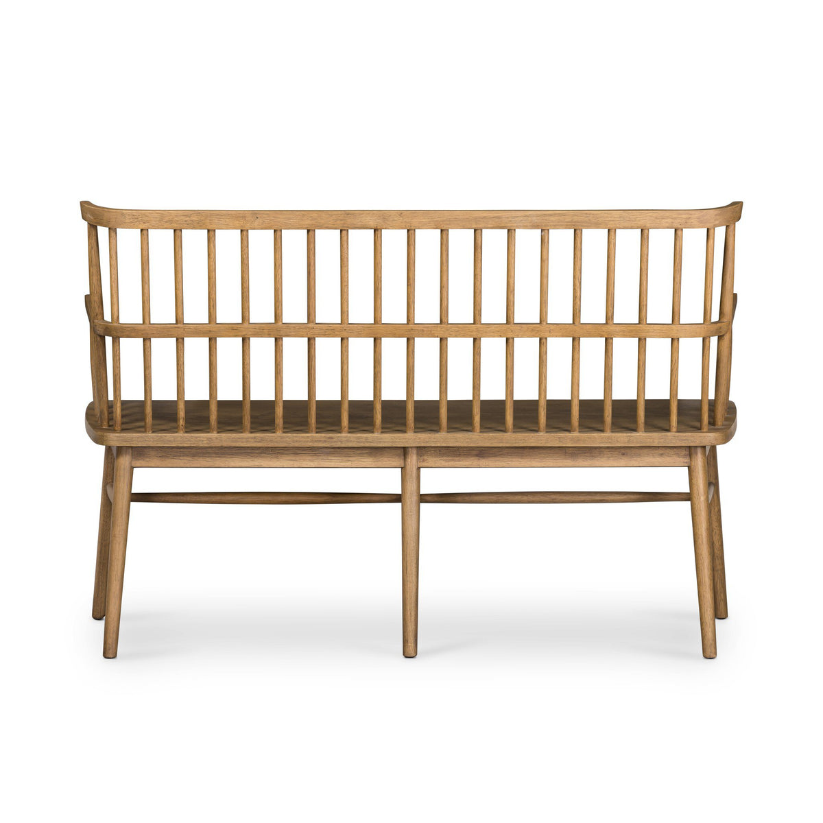 The Aspen Bench offers timeless style with a clean, classic silhouette inspired by traditional Windsor design. Crafted from solid wood with a warm, natural finish, this bench features a high spindle back and gently tapered legs for an airy, graceful profile. Perfect for an entryway, dining area, or living room, it comfortably seats two while adding a touch of rustic charm. Its versatile design blends effortlessly into both modern and farmhouse interiors, making it a functional and stylish addition to your space.
