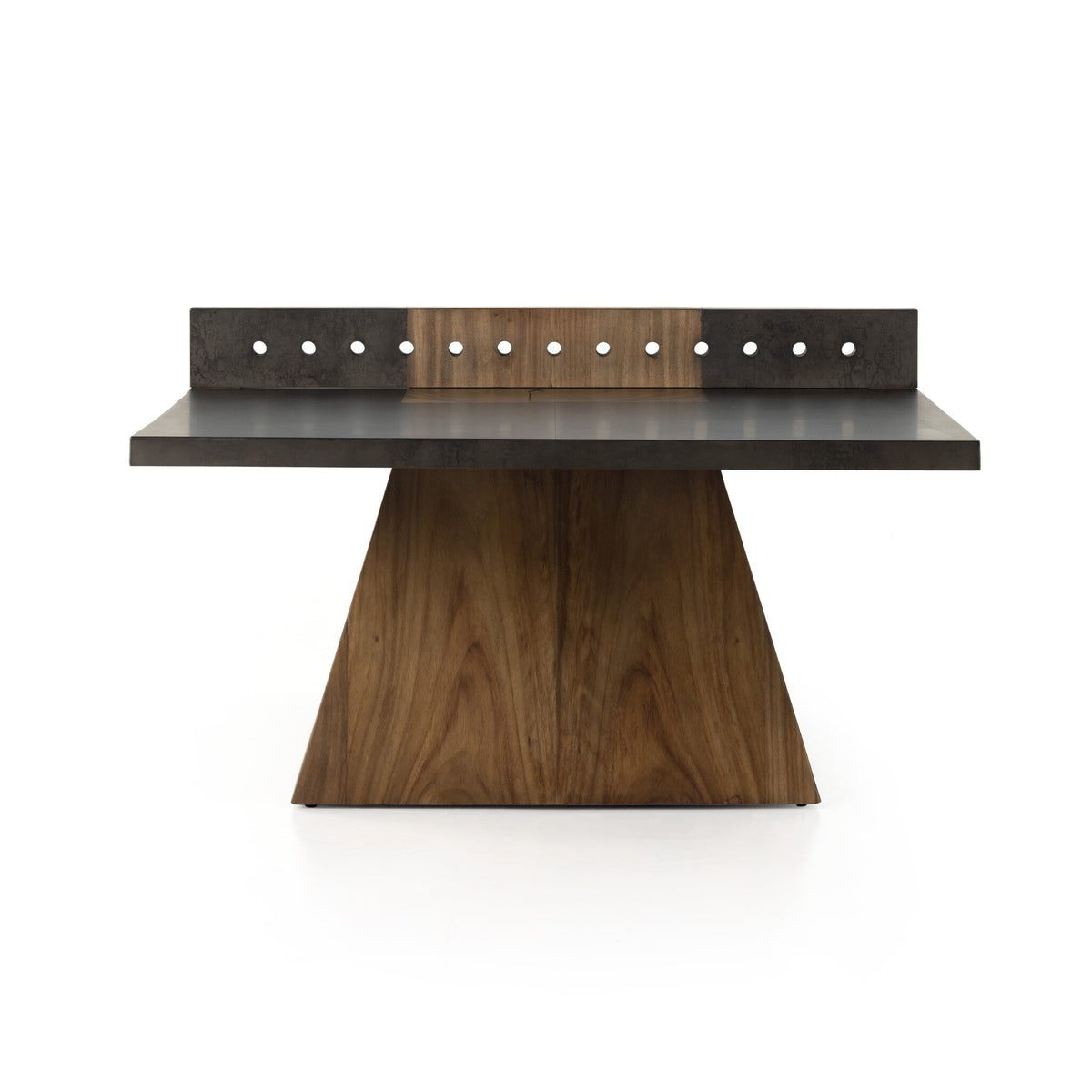 The Convertible Dining + Ping Pong Table is a masterclass in versatility and design-forward function. Featuring a clean, minimalist silhouette with a sculptural wood base and a smooth matte playing surface, this piece seamlessly transitions from a sleek dining or conference table to a full-sized ping pong setup. Discreet net attachment points and streamlined lines preserve the table’s aesthetic integrity, whether you're hosting dinner or an impromptu match. Ideal for modern spaces that value both utility and style, it’s where everyday living meets unexpected fun.
