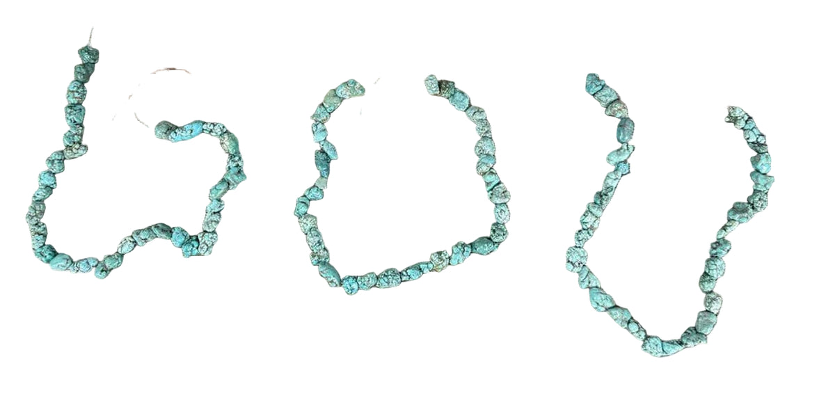 Beautiful, vintage strands of genuine, semiprecious turquoise nuggets. Raw and unpolished.