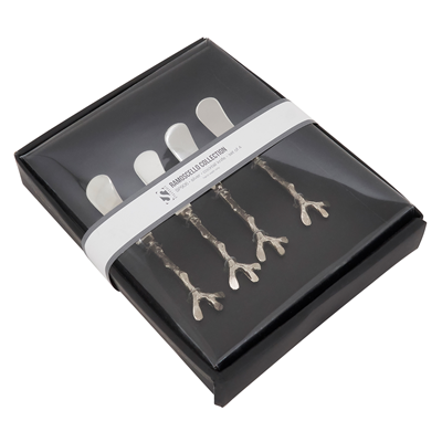 Introducing the Twig Cocktail Knife set, a stunning addition to any luxurious mountain home or contemporary rustic retreat. These artisanal knives boast unparalleled craftsmanship and timeless elegance, perfect for elevating any cocktail hour or intimate dinner party. Hand-crafted with rugged elegance in mind, the Twig Cocktail Knife set is a must-have for those seeking bespoke, heirloom-quality pieces to complete their interior design style. Enhance your entertaining experience and adorn your home with these four exquisite knives, inspired by the beauty of nature and crafted with the utmost care and attention to detail.