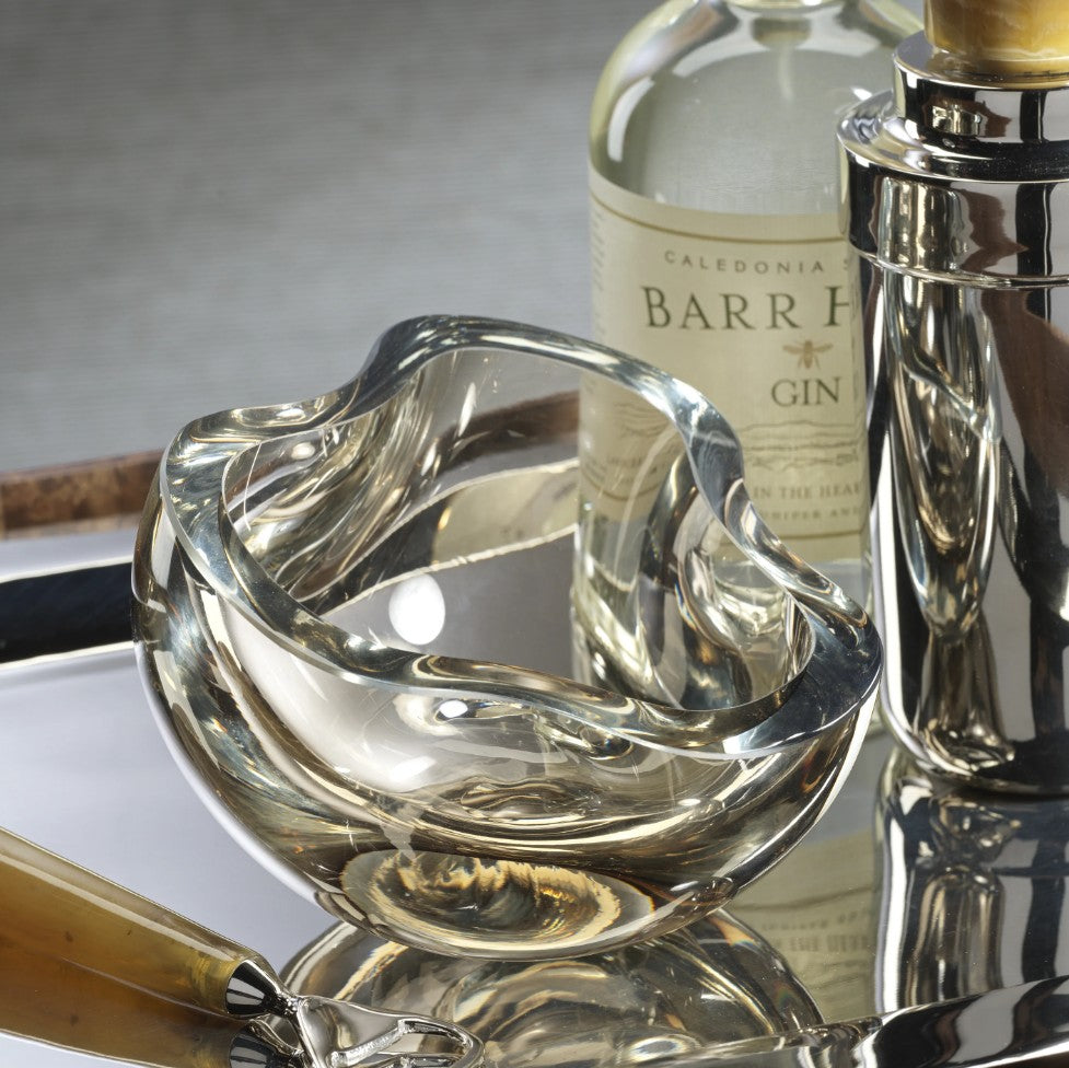 The Viento Glass Bowl in Taupe combines elegant design with practical use, making it an ideal decorative piece for your desk or bar cart. Its subtle taupe hue adds warmth while complementing various décor styles. Use it to neatly hold matchboxes, pistachios, or other small items, keeping your space organized with a refined touch.